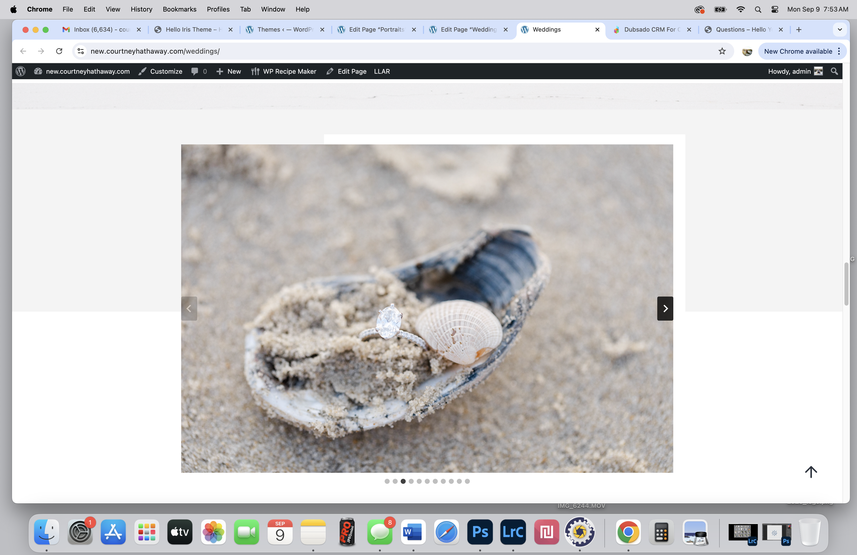 I’ve been trying to add a basic carousel gallery to both the wedding & portrait pages on my website, to no avail. I thought I had a work around by selecting a rotating block section, deleting the side text box and making it 1 column. However, now the white border box behind it is still stuck to one side and not surrounding the entire photo area.