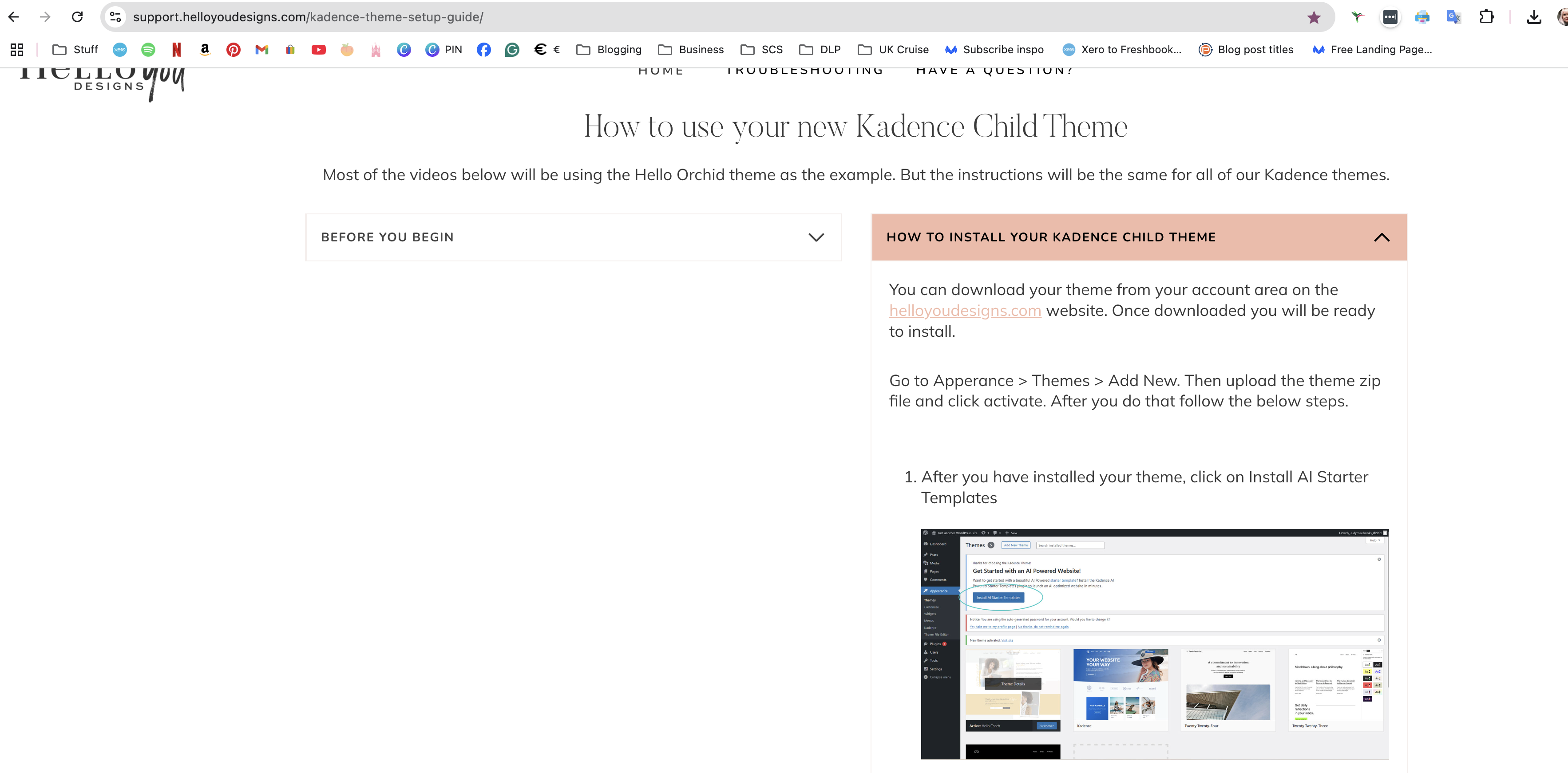 Hi Jennifer, I’m switching from Hello Boho to Hello Blogger. I followed your tutorial for the new theme install, but the option you describe – select AI starter templates – doesn’t appear to be available. I am using a staging platform if that’s helpful. Attaching your instructions and what I can see on my side. Many thanks